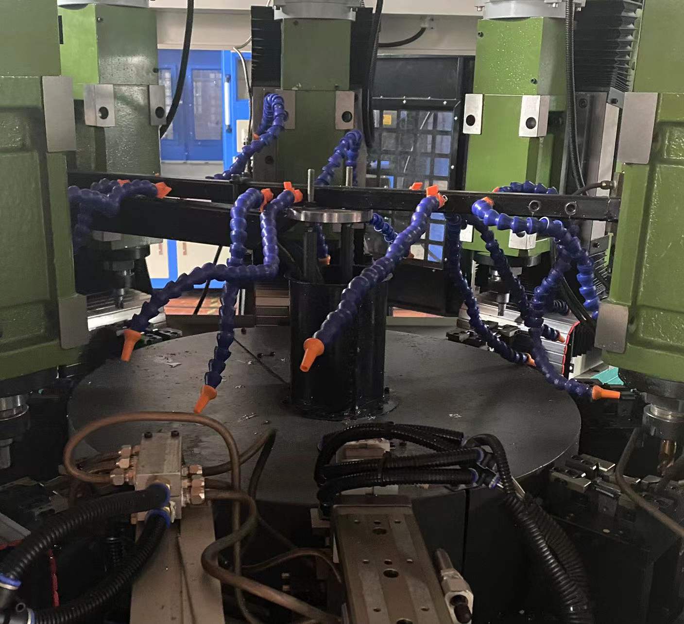 2臺(tái)機(jī)床配?拖?外桁架機(jī)械? ,中間料倉(cāng)上料 ,加?完成?件可配出料槽或輸送帶下料 ,也可防??件磕碰放同料倉(cāng)原 位循環(huán)??取料 ;機(jī)械?上料換料時(shí)間約( 8 - 1 0 )s ;適合加工重量5kg以?xún)?nèi)?型尺?產(chǎn)品 ,機(jī)床含桁架機(jī)械?尺 ?:? X 寬 X ?( 5 m * 1 . 8 m ” 3 . 6 m ),也可以根據(jù)客戶(hù)需求進(jìn)?定制 。